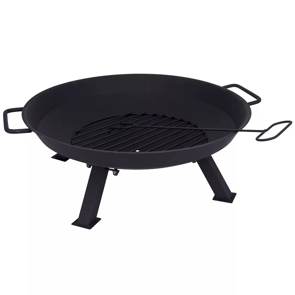 KERTI TŰZRAKÓ TÁL 56 CM-ES ÁTMÉRŐVEL – Fogantyúkkal ellátott kerti tűzrakó, amely ideális választás a kertbe vagy a teraszra. A készlet tartalmaz egy praktikus, 47 cm hosszú pókerbotot is. Rendkívül hasznos kiegészítő, amely lehetővé teszi a tábortűz látványos megrendezését. Alapként is használható bográcsozáshoz vagy grillezéshez. Télen vagy ősszel begyújtva varázslatos hangulatot teremt. A tűzrakó teljes mérete: 65 x 56 x 22 cm.
